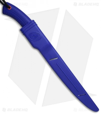 This durable filet knife comes from the BlackFox Water Collection line of diving and fishing tools. It has a rust resistant 420C stainless steel blade and a rubber injected handle. The handle is made from blue polypropylene which is lightweight and easy to grip. It has a 8.5″ blade and an overall length of 14″. The knife comes equipped with a matching blue sheath and a lanyard cord for convenient everyday carry. This affordable BlackFox filet knife will make the perfect addition to your fishing gear.