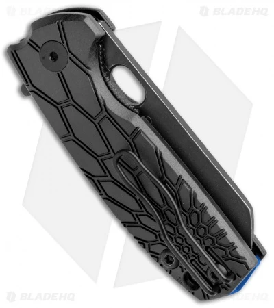 - Black clip point blade made form Bohler N690Co stainless steel.