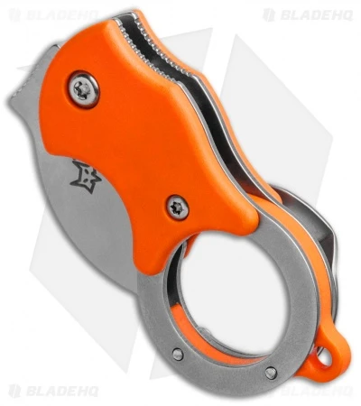 This model of the FOX Knives Mini-KA has a orange handle and a media blasted blade.