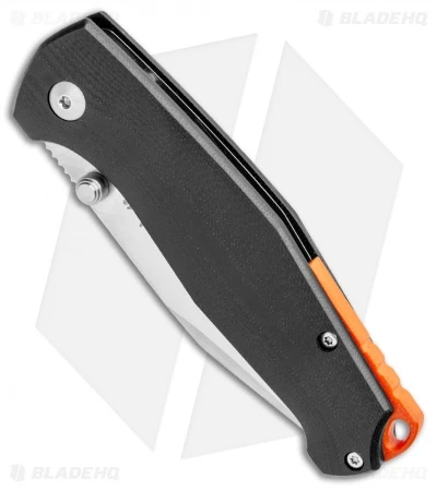 This TUR model sports a black G-10 handle, a satin finished clip point blade, and an orange G-10 backspacer.